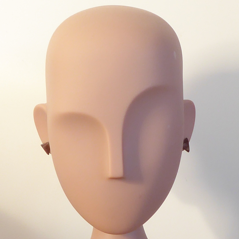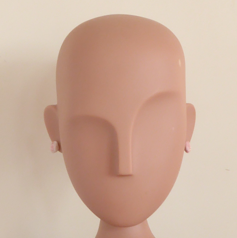Små ørestikkere med en flad basalt - strandsten fra Frederikssund. Diameter 6 mm.